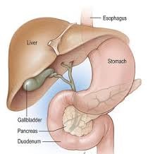 The gallbladder is a small little organ that is attached to the underside of the liver. It is usually about 7-10cm long. The gallbladder contains bile and sometime stones. It is connected to the bile duct that drains the bile into the intestines to help you digest fats.