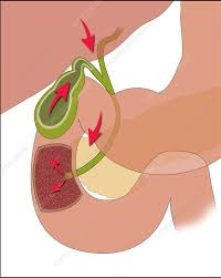 When we eat fatty foods, it signals the gallbladder to squeeze the bile out. It travels down the bile duct and enters into the intestine to help digestion.